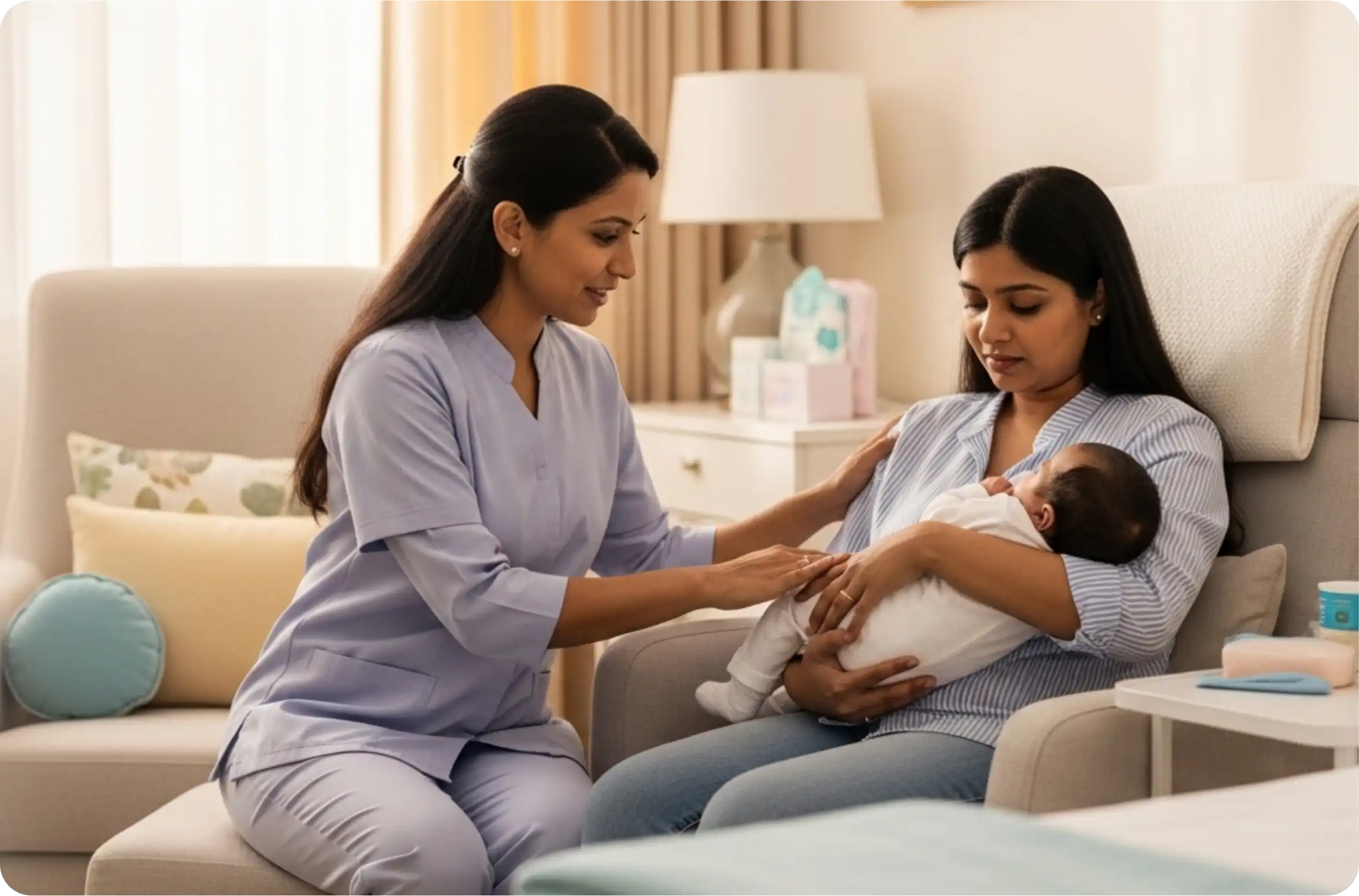 - Breastfeeding After C-Section: Specialised lactation support for new mothers in Mumbai who require assistance with comfortable post-surgery feeding positions.